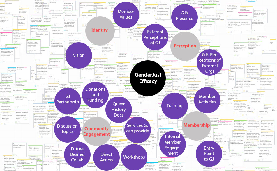 From our analysis, we uncovered several themes related to GenderJust's efficacy as an organization and the community at large. Some of these themes are shown below.