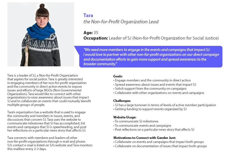 GenderJust (GJ) is a non-for-profit organization that cultivates conversations in society around complex issues and is dedicated towards the transformation to a more just society. For this project, we worked to understand GenderJust and how their vision, activities, and challenges fit into the larger sphere of organizations they interact with. The goal was to design a website for GenderJust that aligned with the organization's mission and helped to alleviate some of the challenges faced by GenderJust.